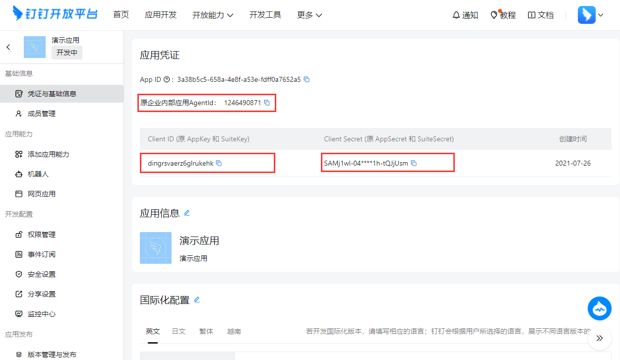 1、钉钉开放平台点击【基本信息->开发信息(旧版)】或访问:https://open-dev.dingtalk.com/v2/fe/old#/corpAuthInfo