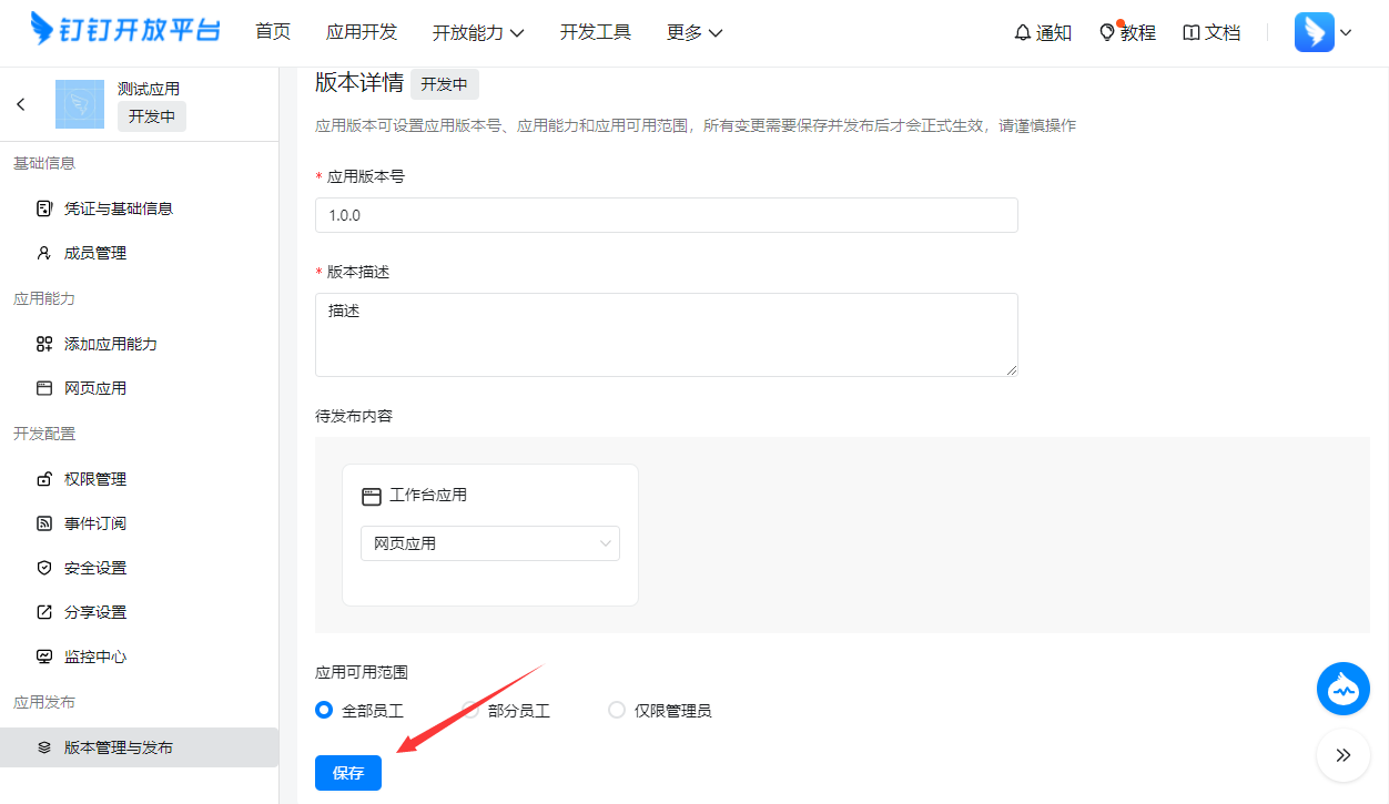 - 输入版本描述然后点击【保存】