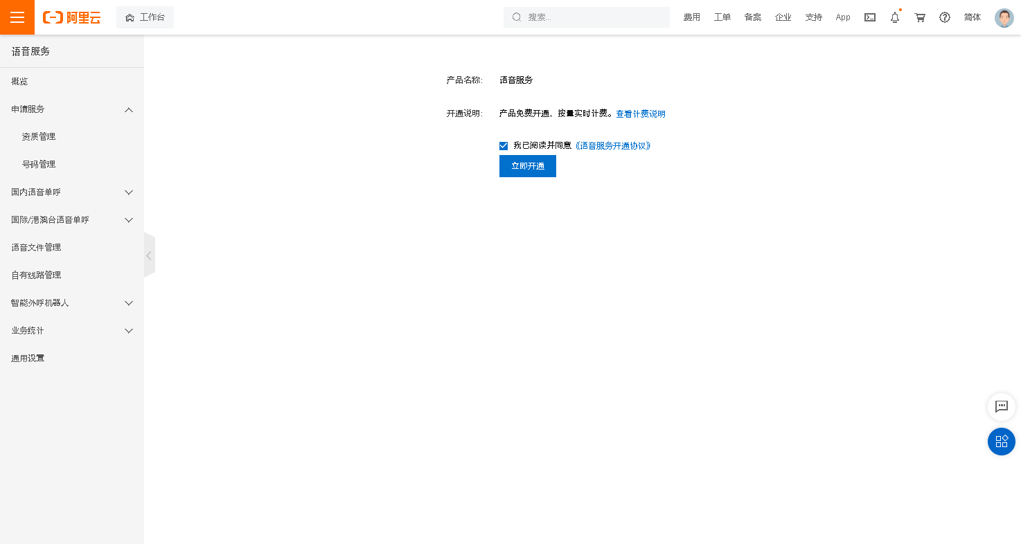 语音服务。具体操作,请参见开通语音服务。