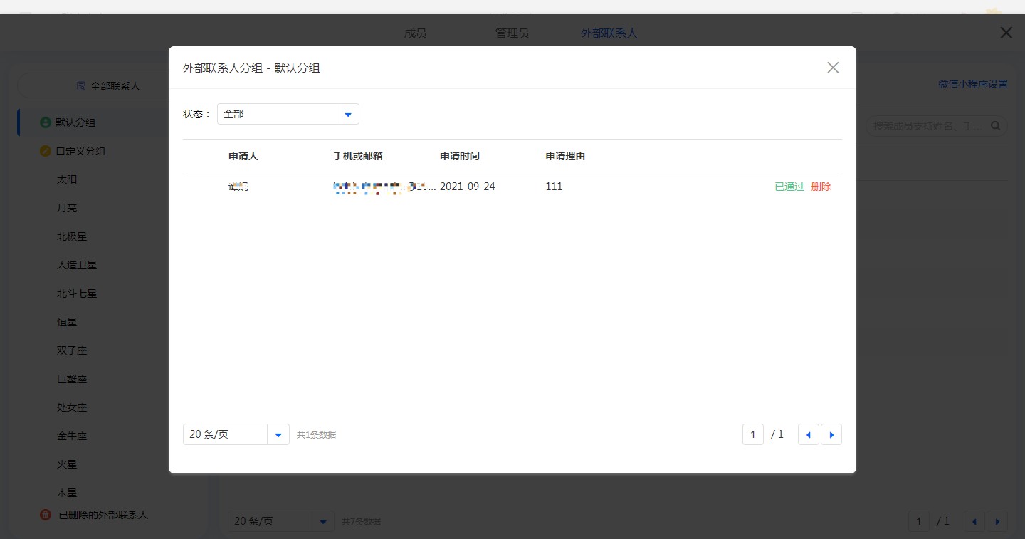 注意:已邀请状态的外部联系人删除后直接清除,不会进入【已删除的外部联系人】列表中。