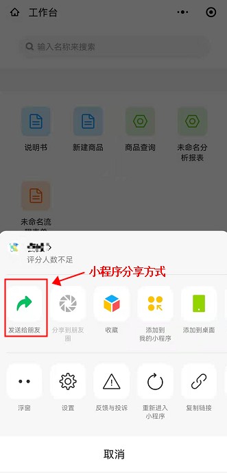 团队内部成员或者团队外部联系人登录小程序,通过小程序自身分享链接给其他人,其他人点击后自动加入该团队。