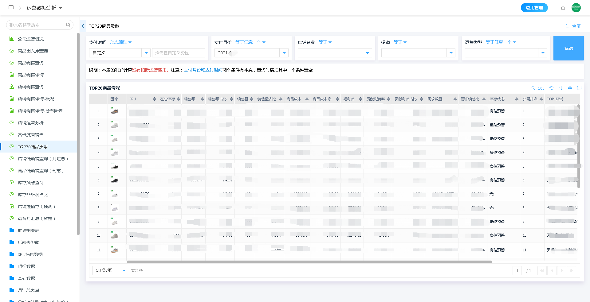 通过使用微睿云平台强大的计算能力,对商品销售数据的分析,在千万级的基础数据中计算出TOP20商品贡献的商品,有助于企业在后续的运营、推广等环节针对性的做出正确的决策。
