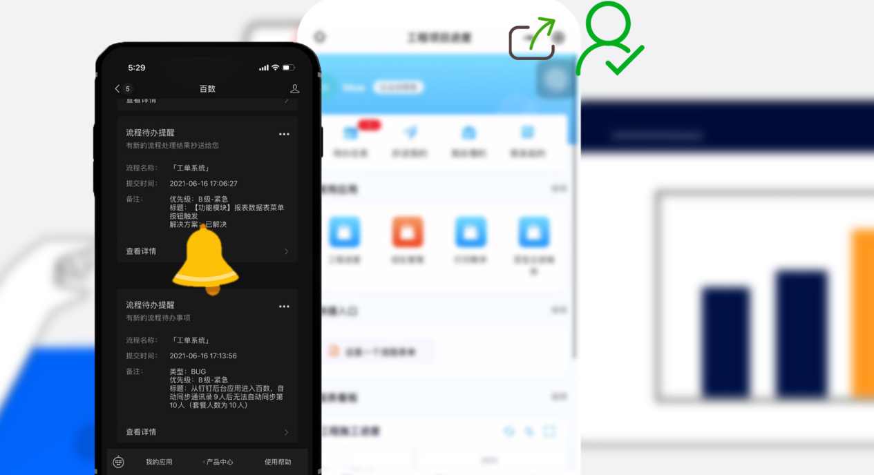 下单完成后可以在线处理订单信息并查看/编辑历史数据,同时在系统/小程序/公众号等多方平台也能同步推送业务通知并进行处理。