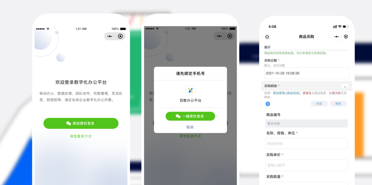 通过微信小程序设置分享链接或二维码给供应商,链接以及二维码都可以自定义生效时间,供应商一键授权后可以在分享的小程序中直接进入相应的表单进行录入、查询、分析数据等操作,方便企业实时与供应商对接供应需求。
