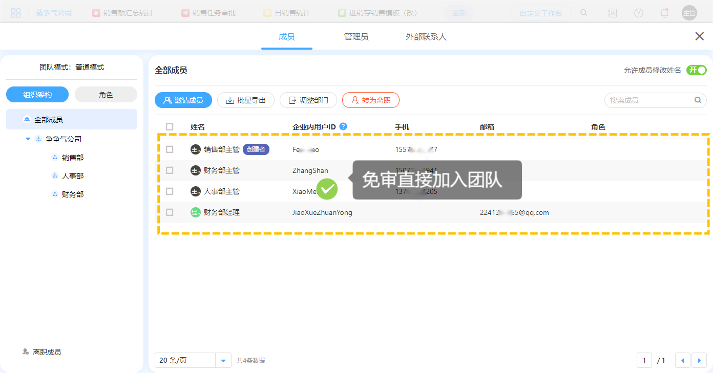 如在开启导入免审设置之前已经进行了手动添加成员或批量导入成员,需要对之前邀请的成员再次邀请或导入,导入后会自动激活该成员。