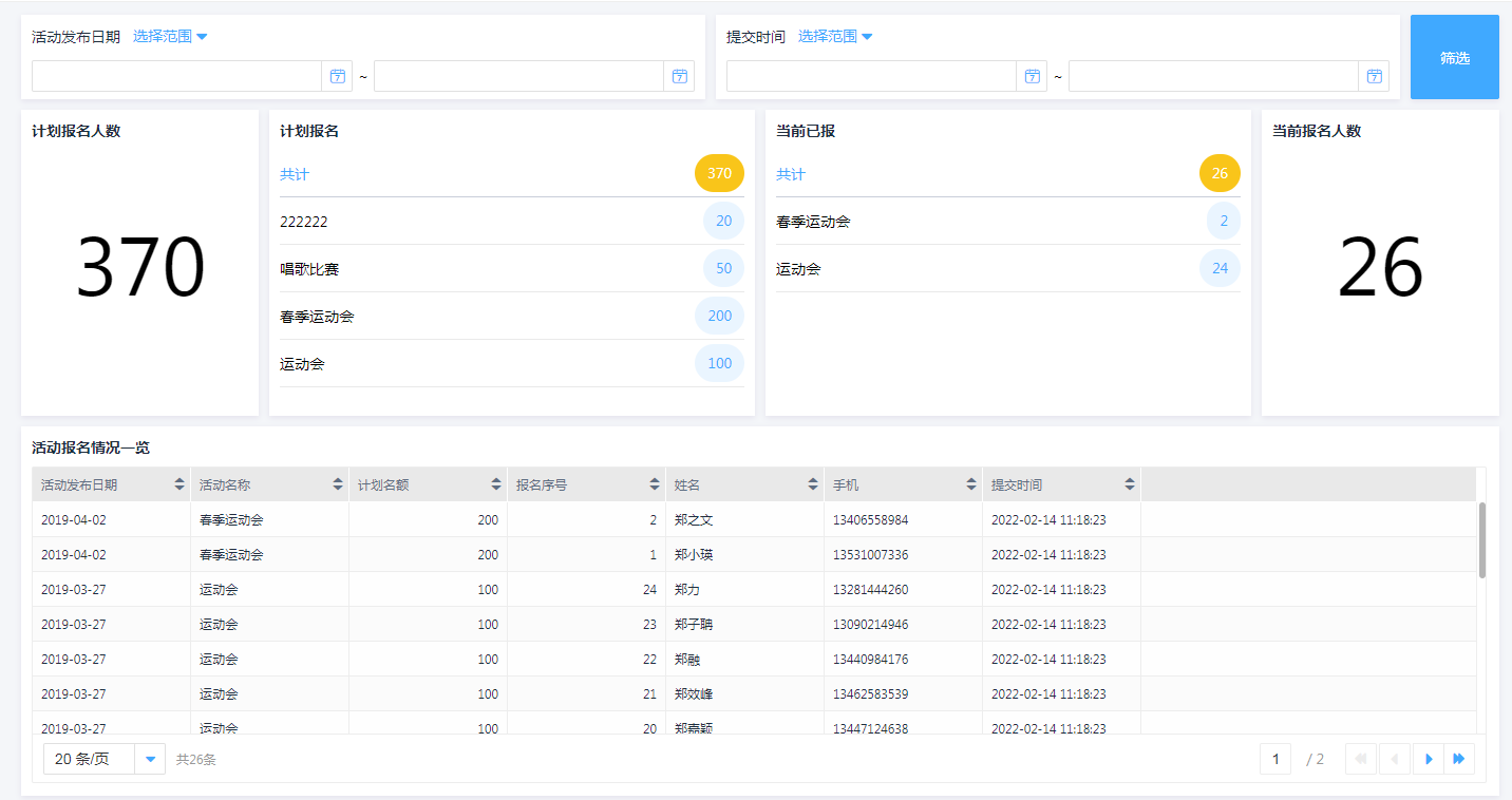 3.活动报名信息可视化报表
