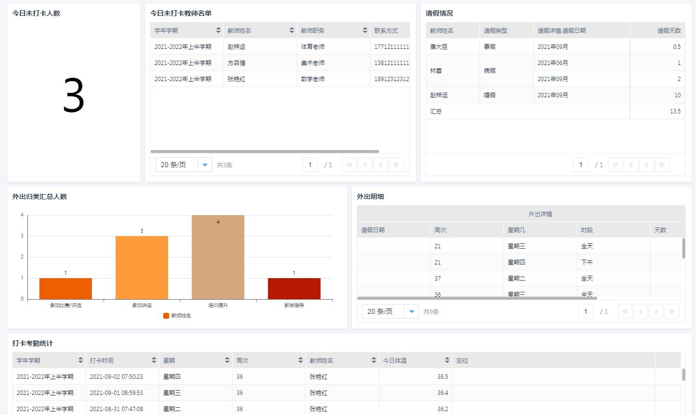 2.教师日常出勤情况