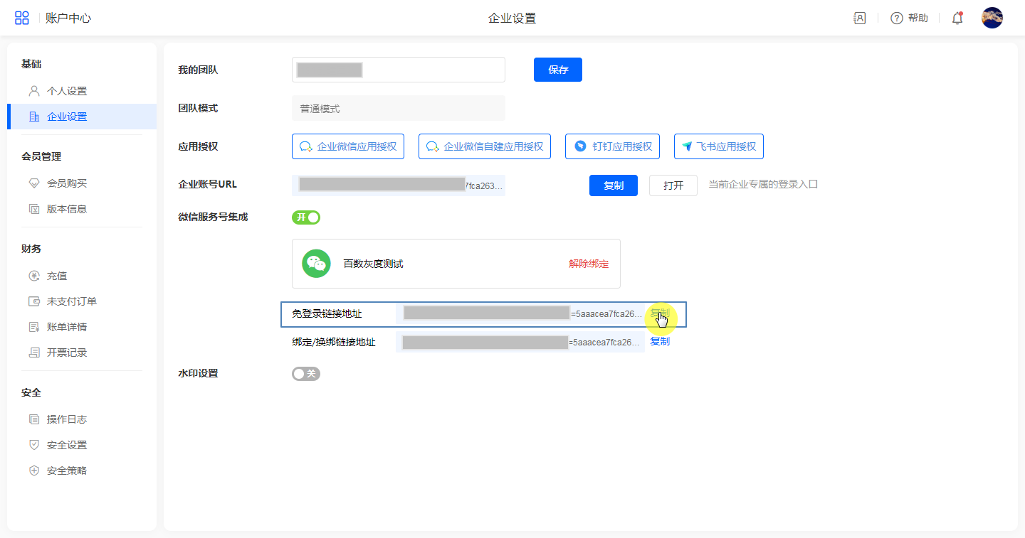 绑定/换绑链接可以复制后发送给成员完成同本平台账号的绑定及换绑操作。