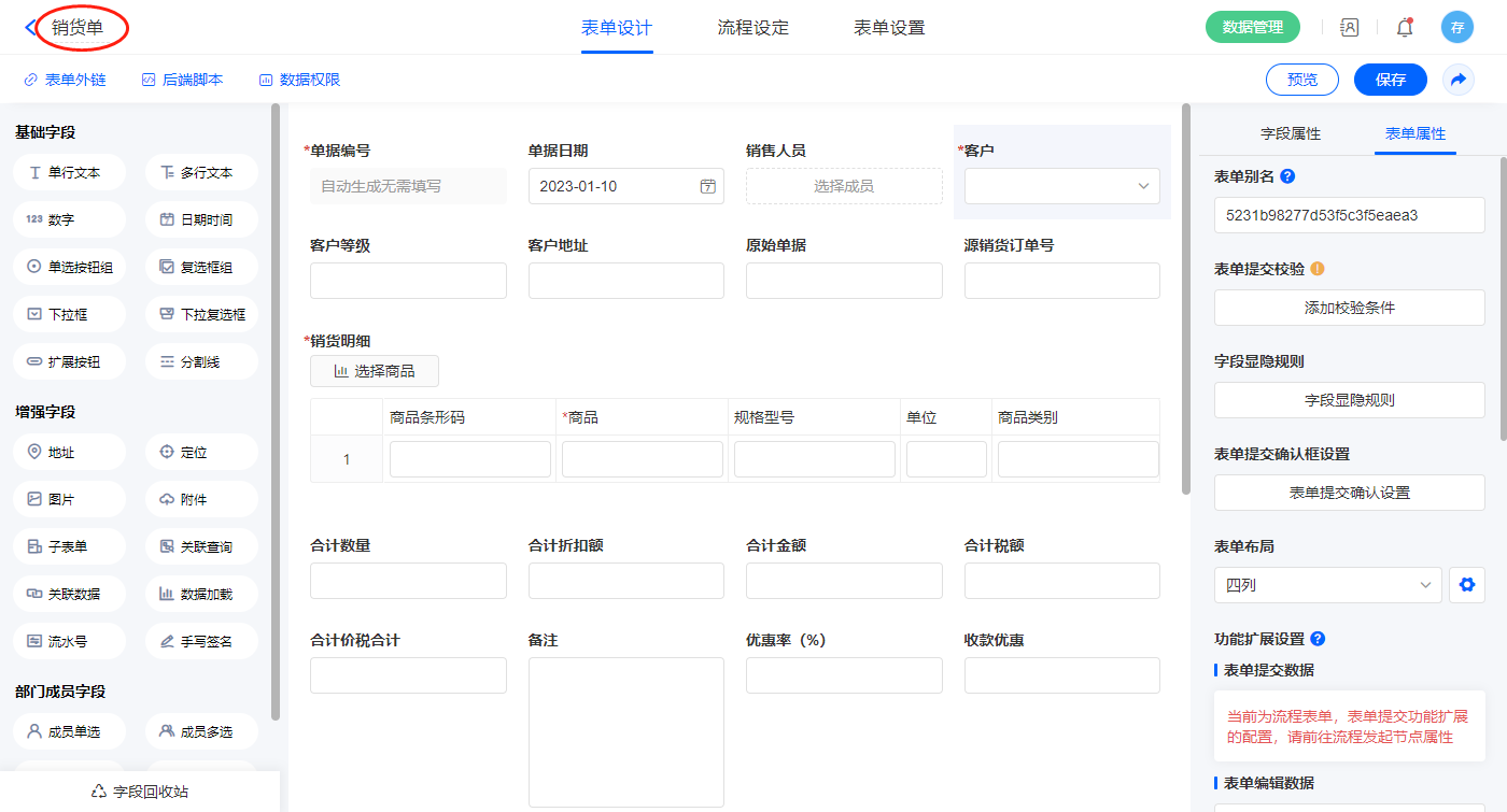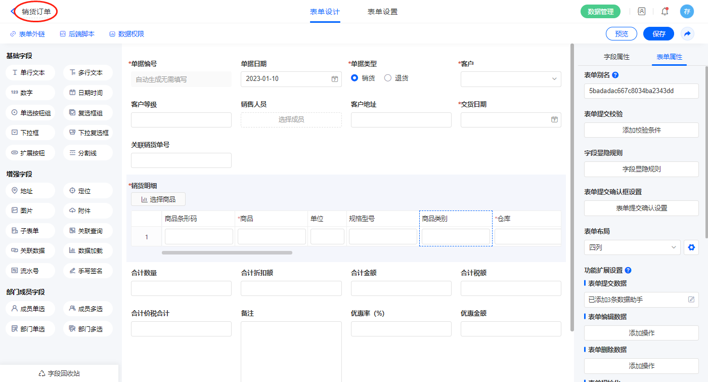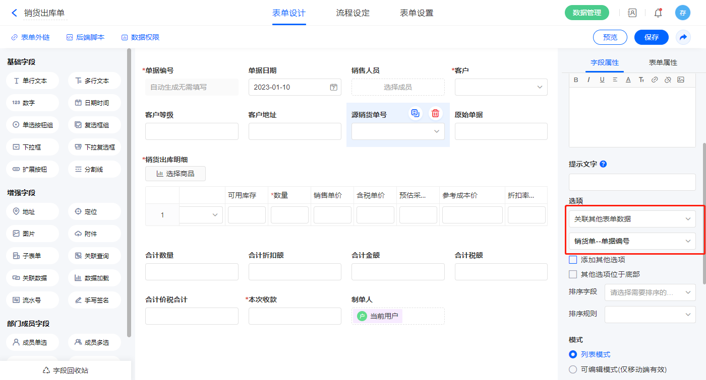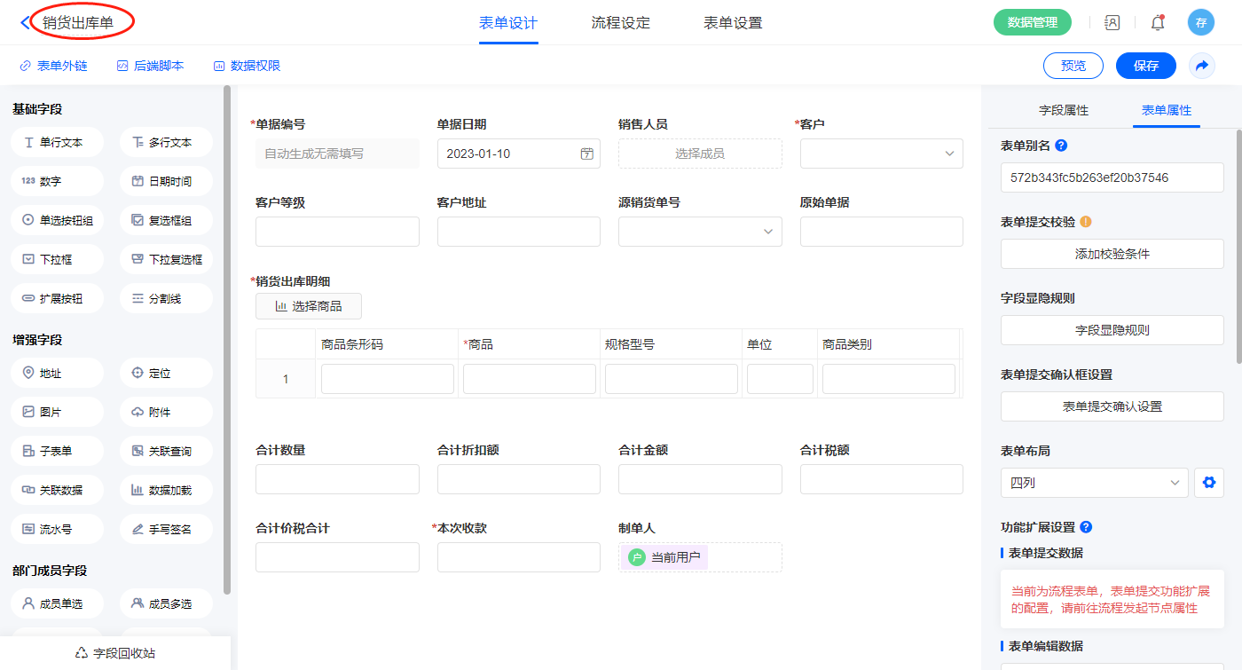 - 2.6、表单【销货出库单】字段及表单属性设置
