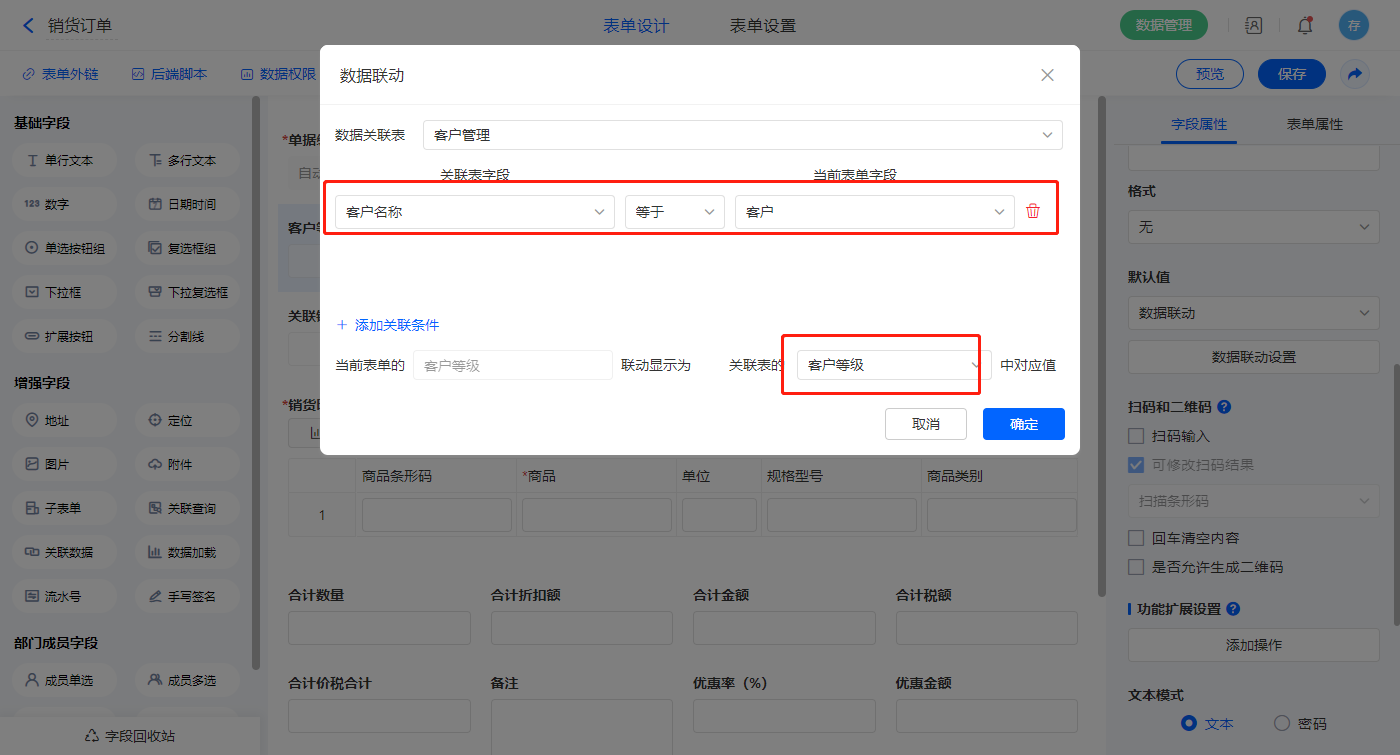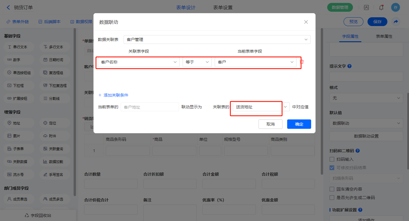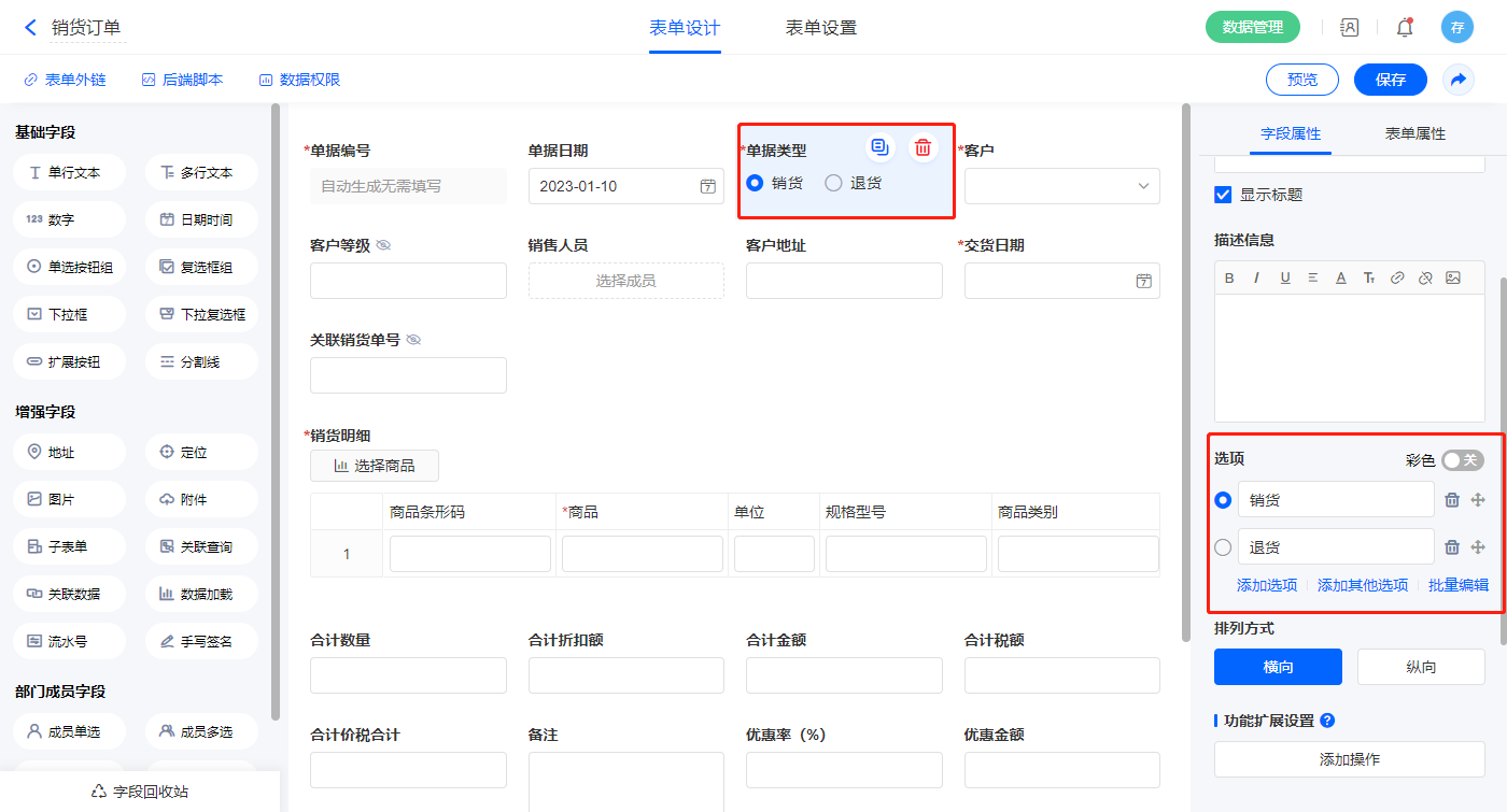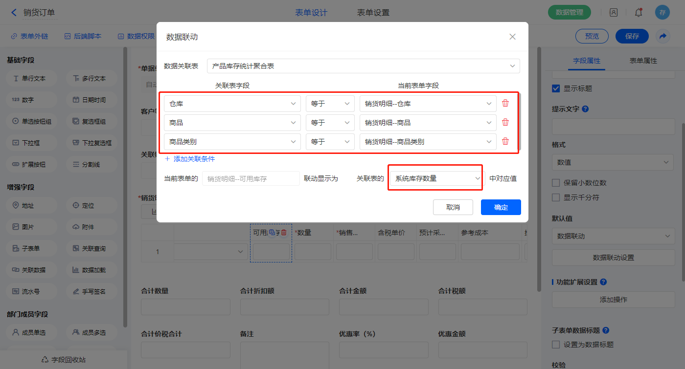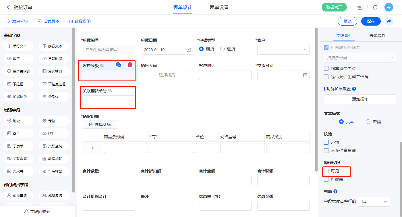 - 2.6、表单【销货出库单】字段及表单属性设置