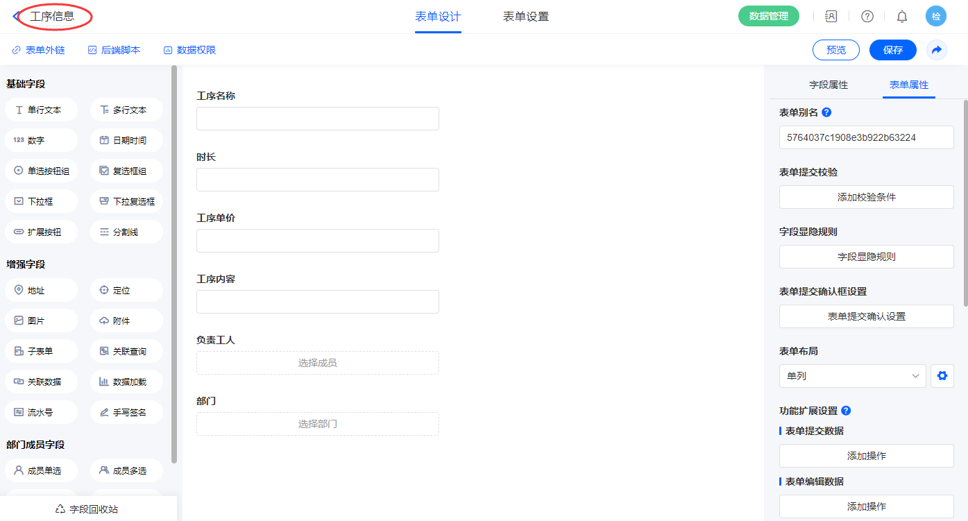 | 工序名称 | 单行文本 |