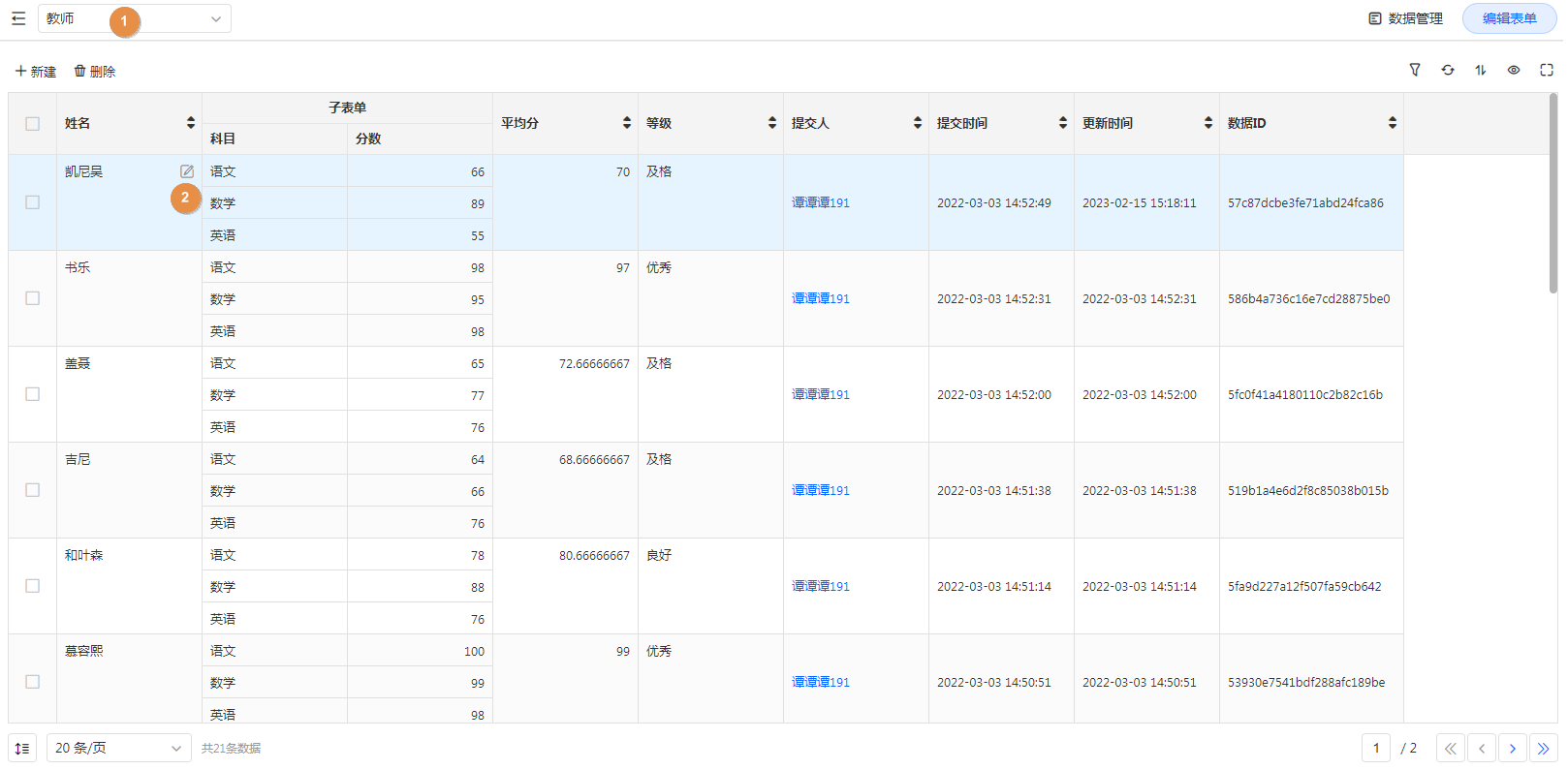 在电脑端编辑数据时,支持直接在表格上快捷编辑数据,无需点击数据详情。