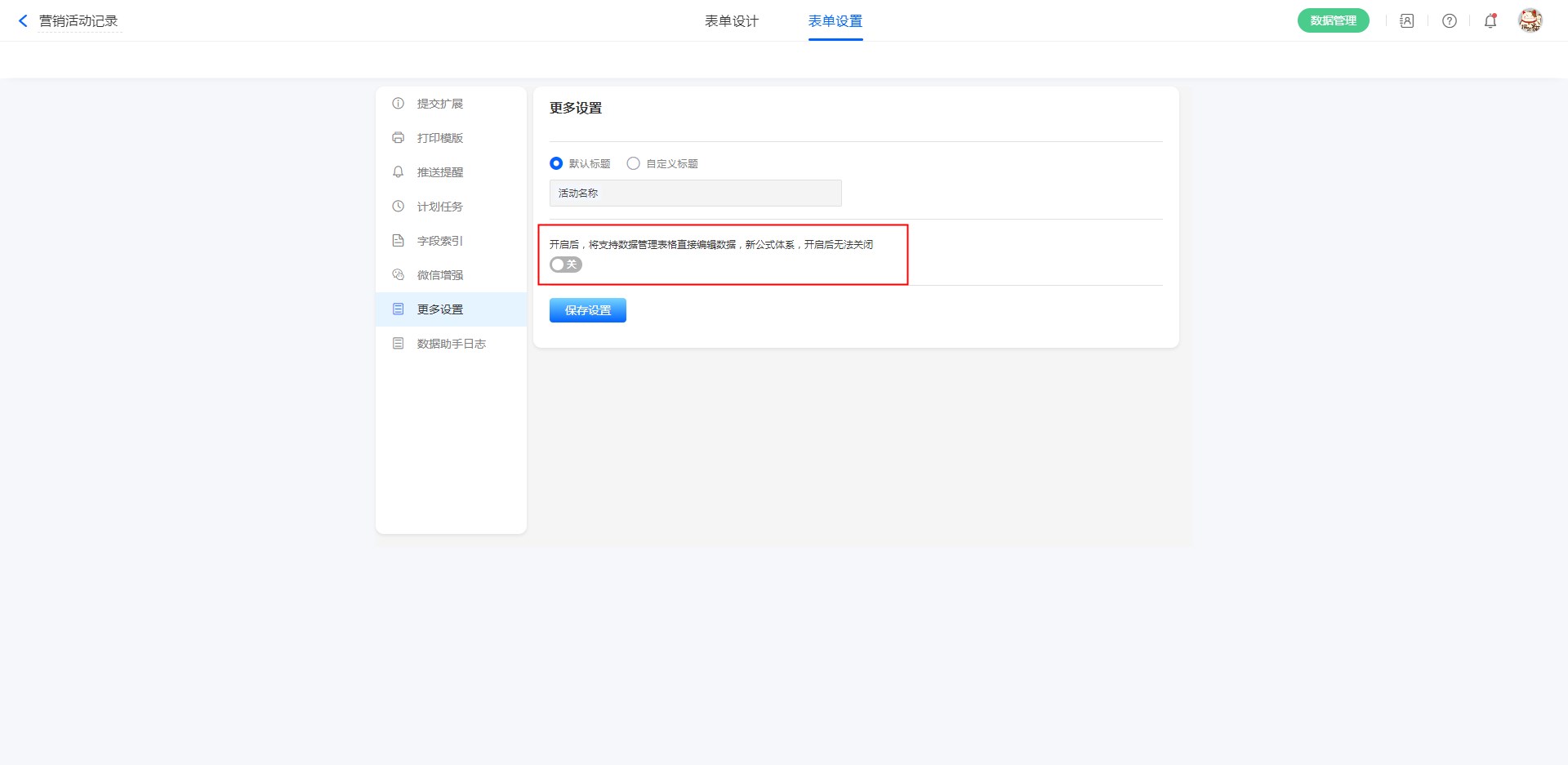 - 旧的表单需要在 表单设置-更多设置 开启管理编辑功能,开关打开后不再显示