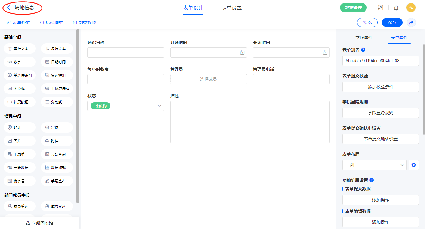 | 联系方式 | 单行文本 | 成员信息 | 子表单 |