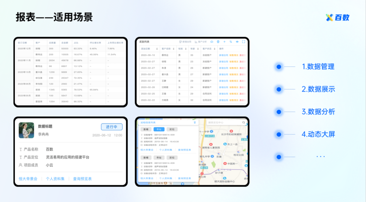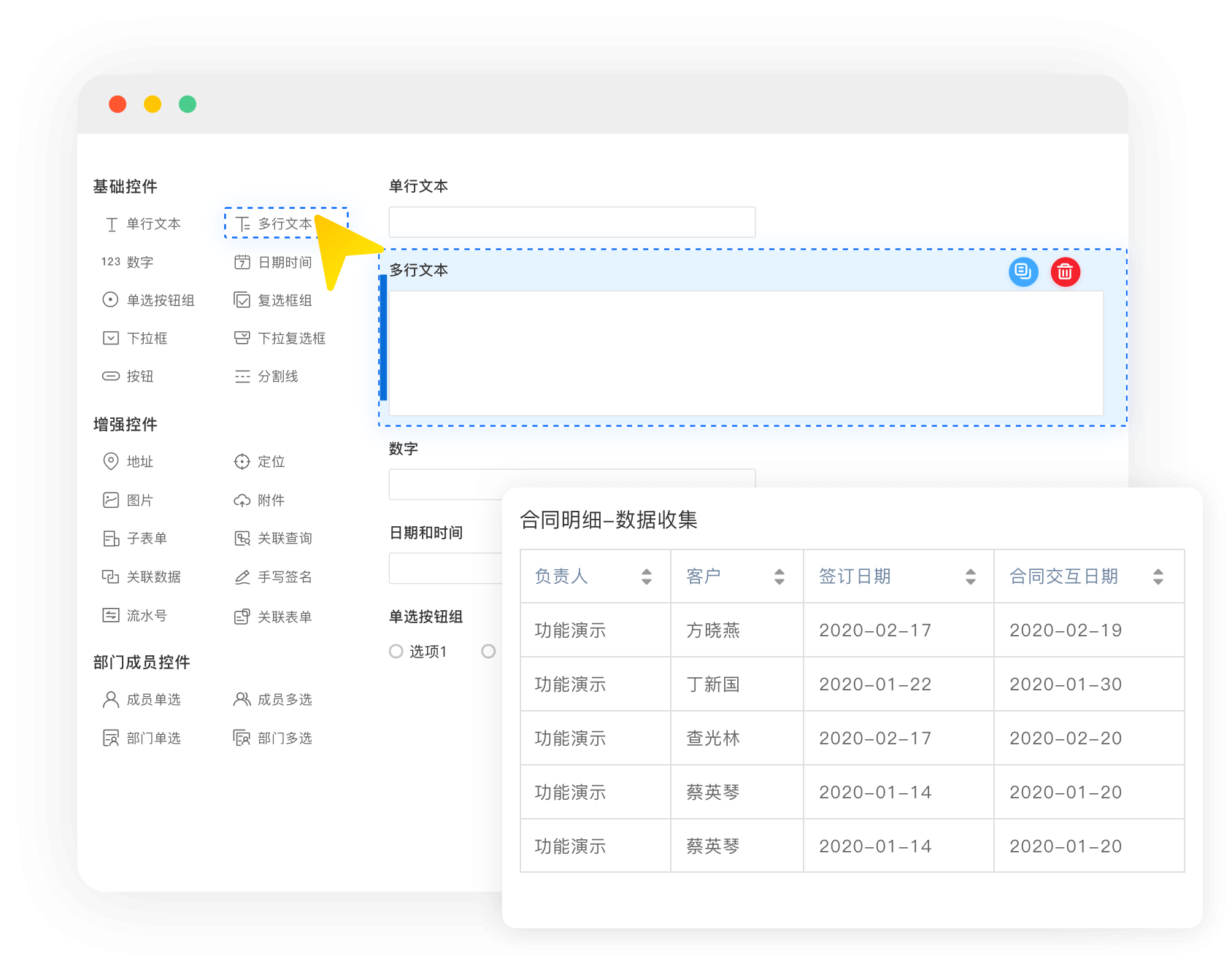 通过微睿云可以迅速搭建简单实用的CRM管理系统、进销存、生产管理、人事管理系统、财务系统,或者是调查问卷、报名登记申请等等应用场景。