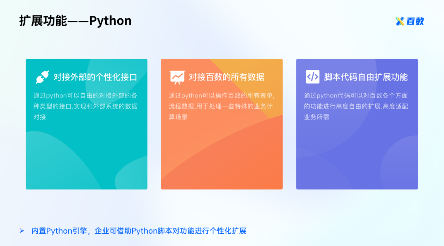 - Python:微睿云已覆盖目前市面上低代码产品的大多数功能,当用户对产品有特殊需求时可使用Python来实现。