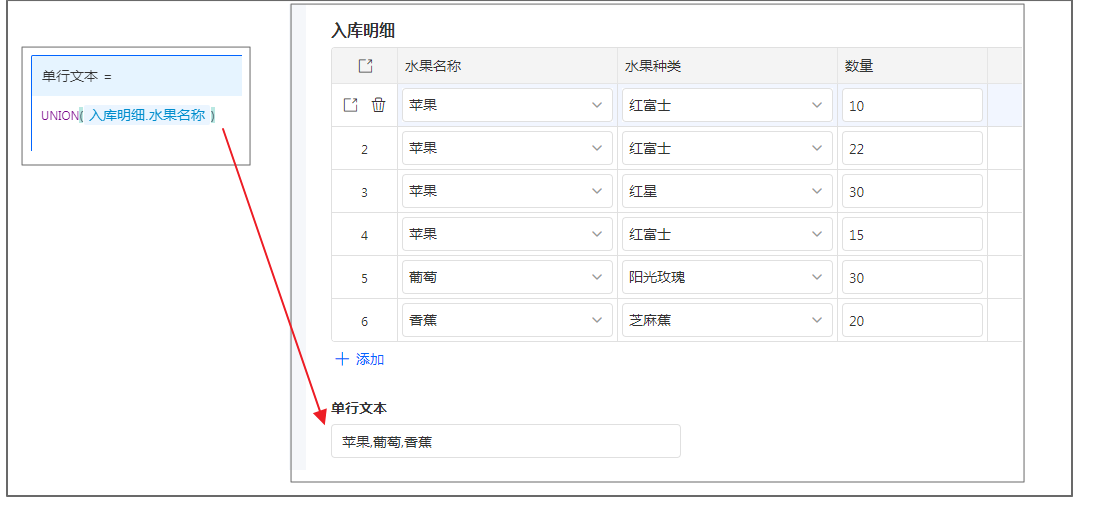 UNION(文本1,文本2,文本3,文本4,...) 或 UNION([数组])