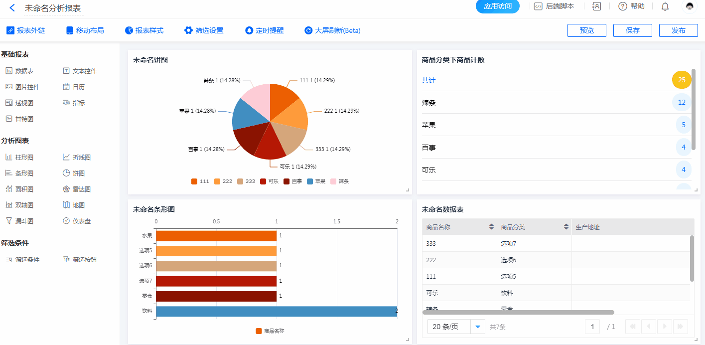 报表打通了后端开发与功能插件,还可进行数据操作,具体报表的使用请参考具体文档。
