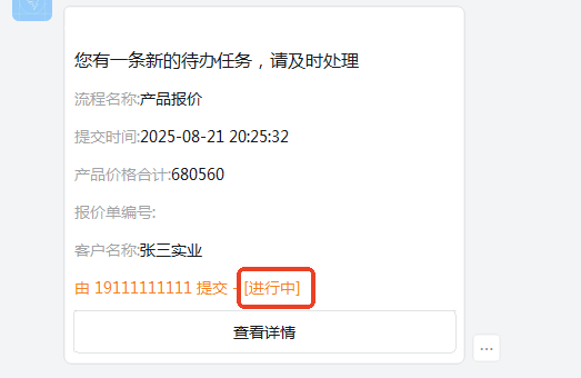 - 钉钉流程待办消息,支持显示流程状态。( 状态类型:进行中、 已同意、已拒绝、已撤回、已结束、已删除、其他人已同意、其他人已拒绝)