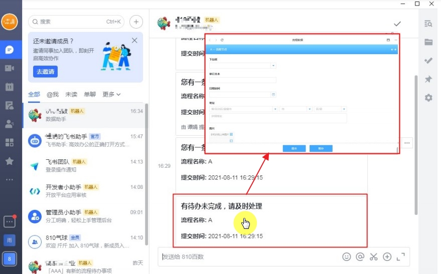 注意:移动端飞书中,表单的图片字段和附件字段不支持多附件打包下载功能。