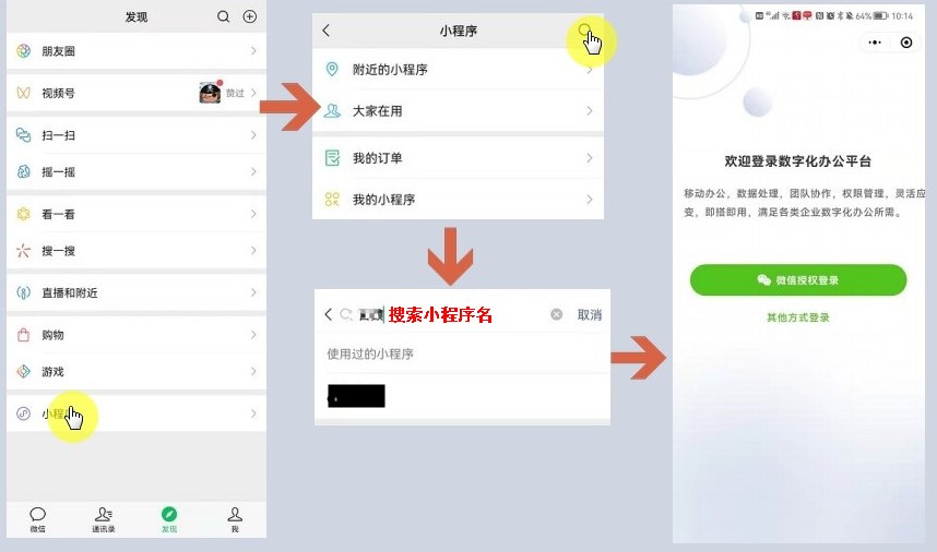 微睿云支持微信小程序上使用,在微信后台小程序中搜索微睿云,使用微信授权登录或者微睿云账户密码登录,登录成功后进入微睿云系统。