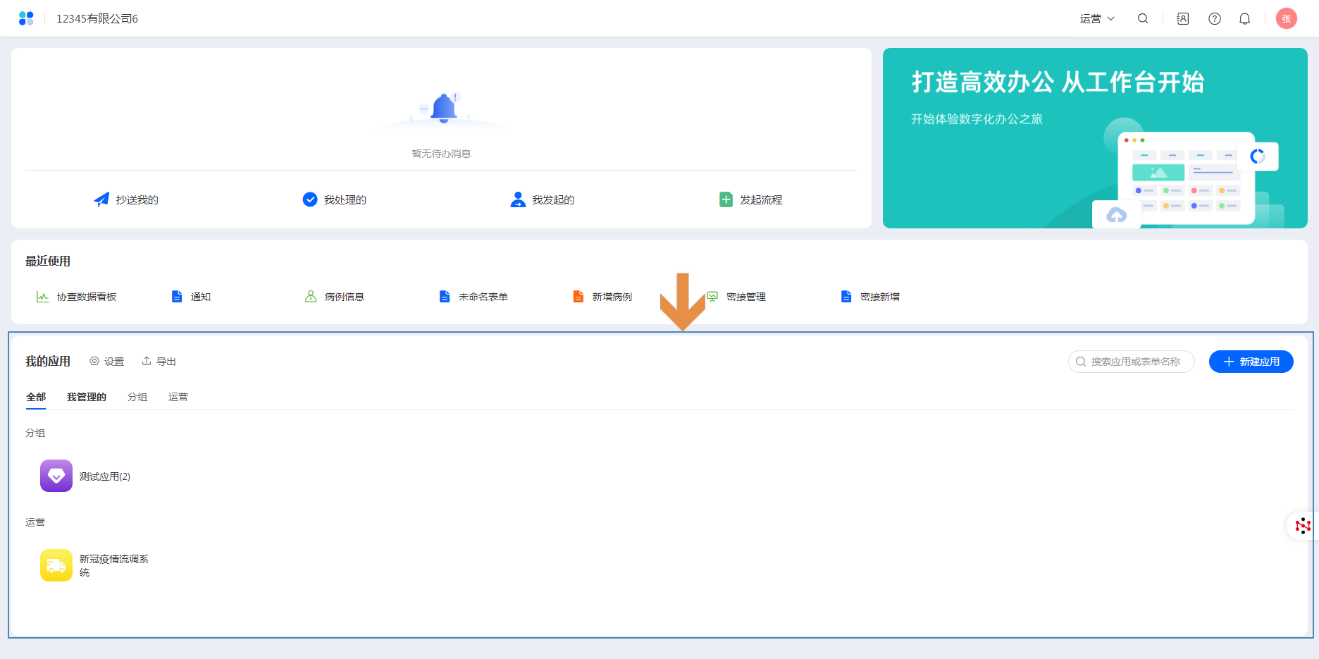 应用管理包括应用的基本设置,如:应用分享安装、应用数据删除、应用排序与新建等。