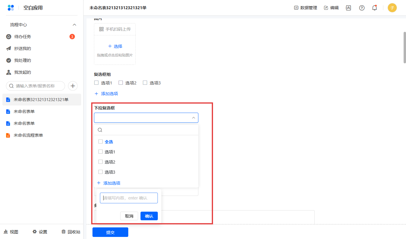 “复选框组”控件字段,可以修改转为“下拉复选框”。