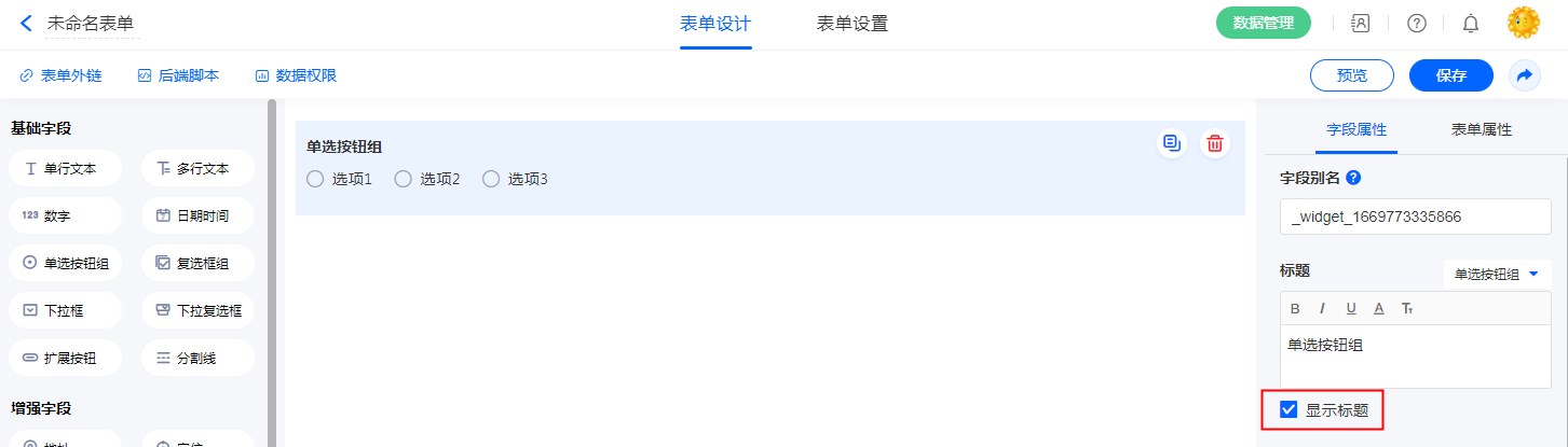“字段别名”用于后端开发,默认为系统自动生成的随机字符串,可修改。