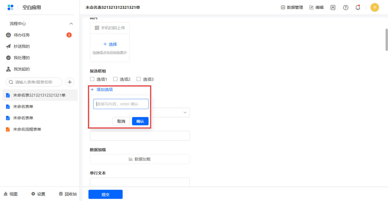 勾选允许成员填写时,添加新选项成员增加自定义选项