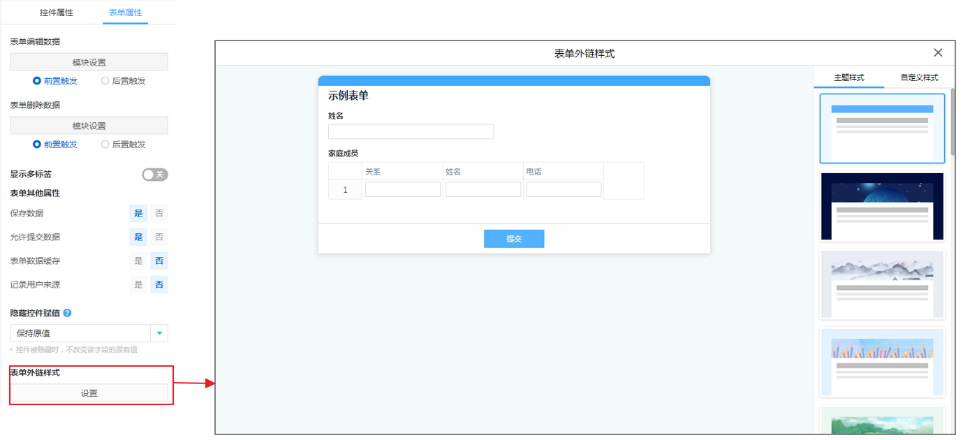 表单外链的样式分为主题样式和自定义样式,主题样式即微睿云内置的样式模板我们选择就可使用。自定义样式即由自己自定义设置。