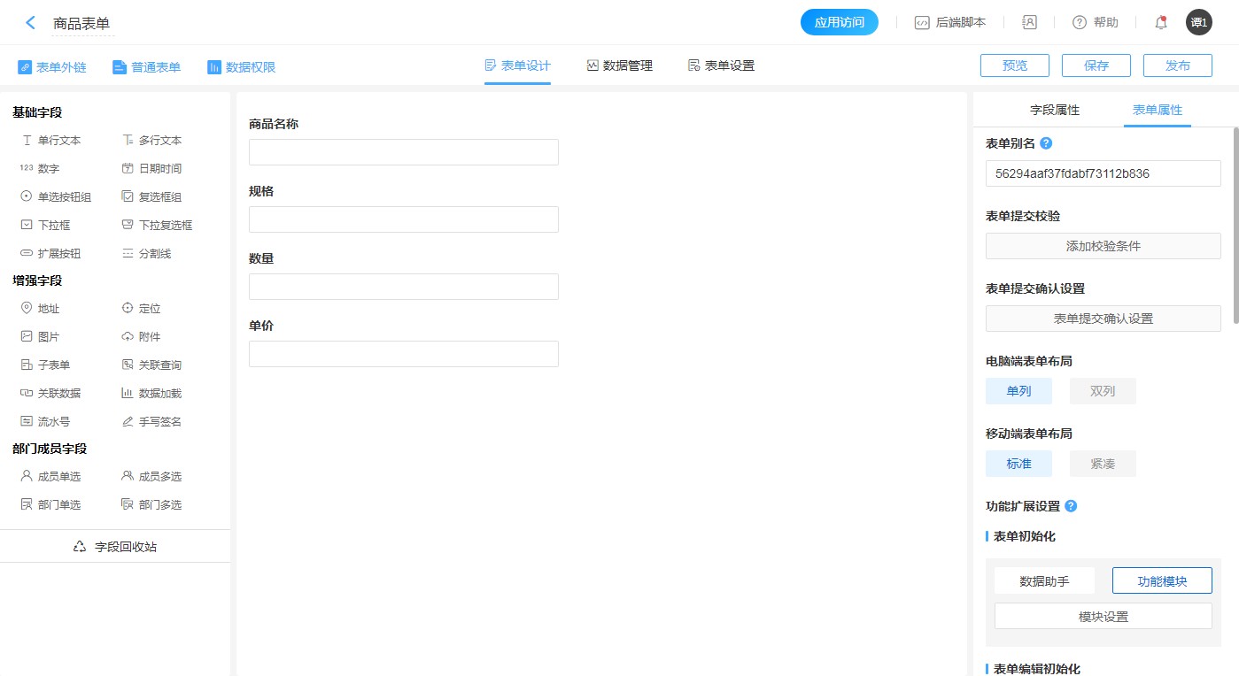 - 2.创建表单【进货单】,用于关联表单【商品表单】的数据。