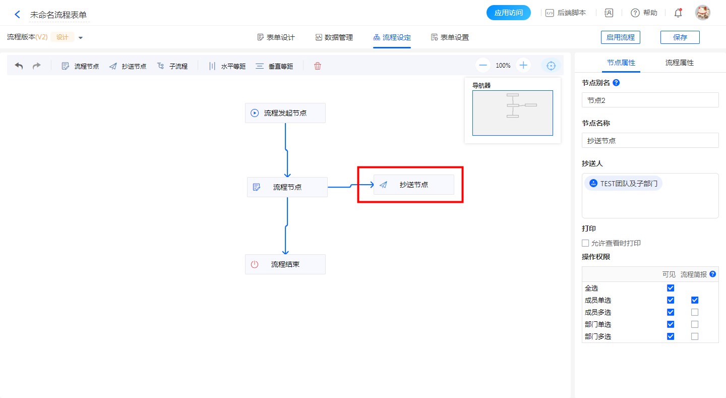 步骤:【新建抄送节点】——【设置负责人】——【操作权限】——【勾选可见字段与流程简报】