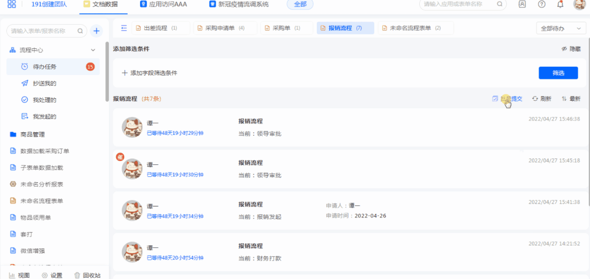 批量提交即可根据流程简报信息帮助我们快速预判并批量处理自己的待办数据,有助于提高工作效率。