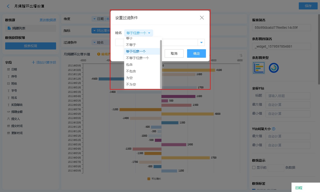 数据源就是指当前条形图表的数据来源,可以是表单、数据视图。