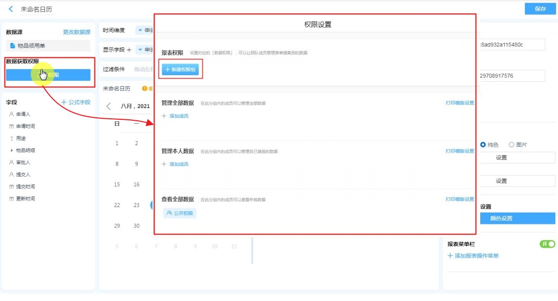 查看全部数据默认为公开权限,即如果不设置自定义的操作权限组,那么报表外链仅可供对外展示数据。