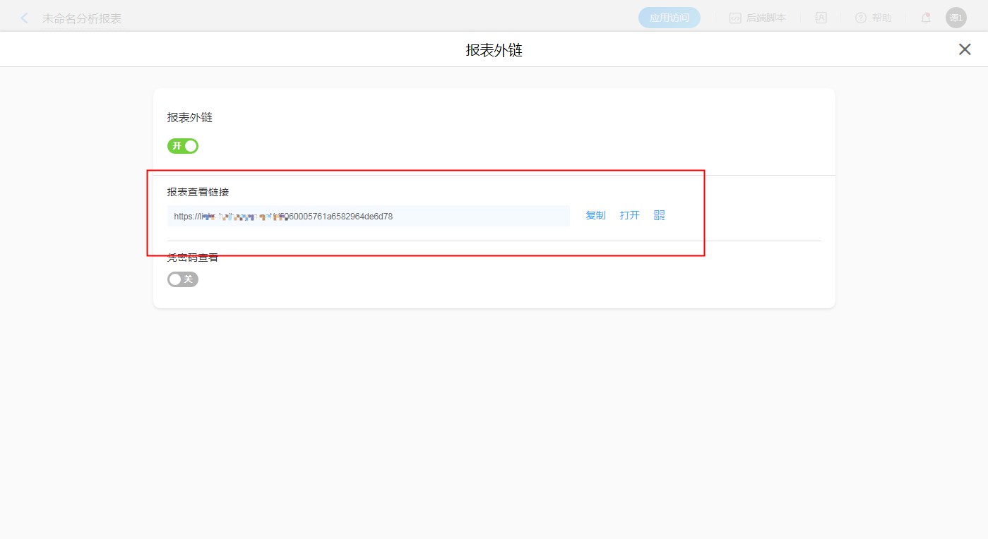 位置:【报表设计】-【报表外链】-【开启报表外链】