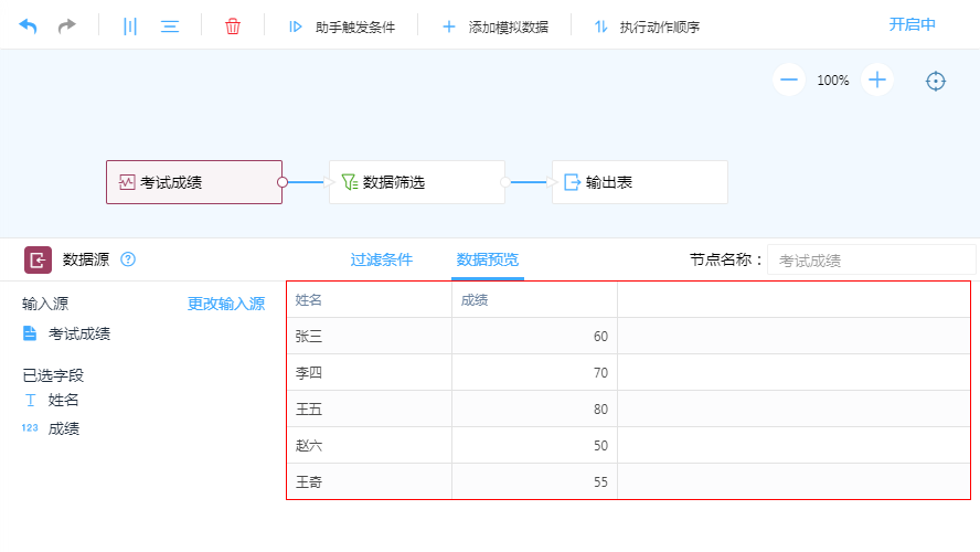 根据配置条件筛选后,只允许符合条件的数据通过。